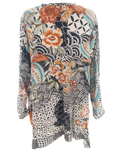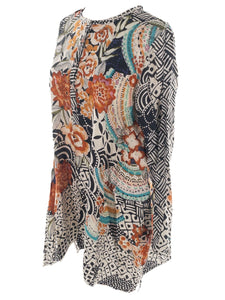 Johnny Was Black Multi Floral Silk Long Sleeve Size S Blouse