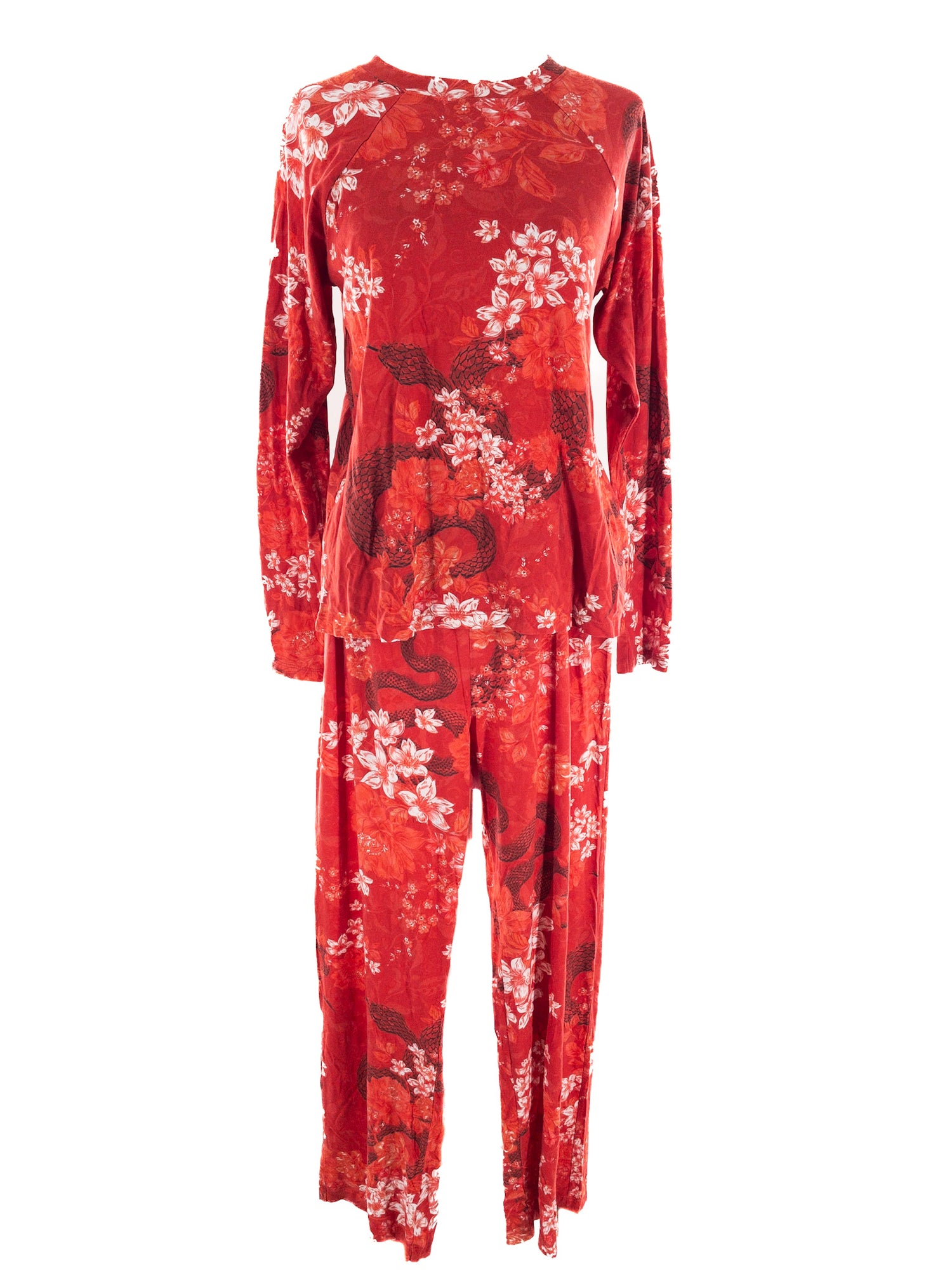 Johnny Was Red Multi Floral Cotton Blend Size S Pajamas