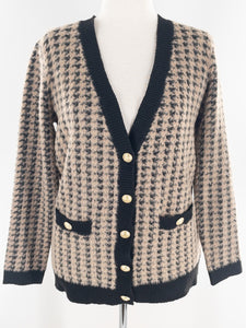 Tahari Camel Black Houndstooth Polyester Size M Cardigan