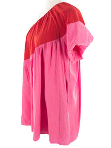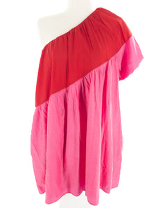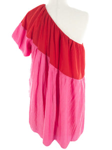 TCEC Hot Pink Red Color Block Rayon Blend One Shoulder Size L Dress