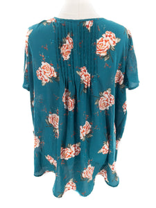 Torrid Teal Multi Floral Polyester Flutter Sleeve Size XL Blouse