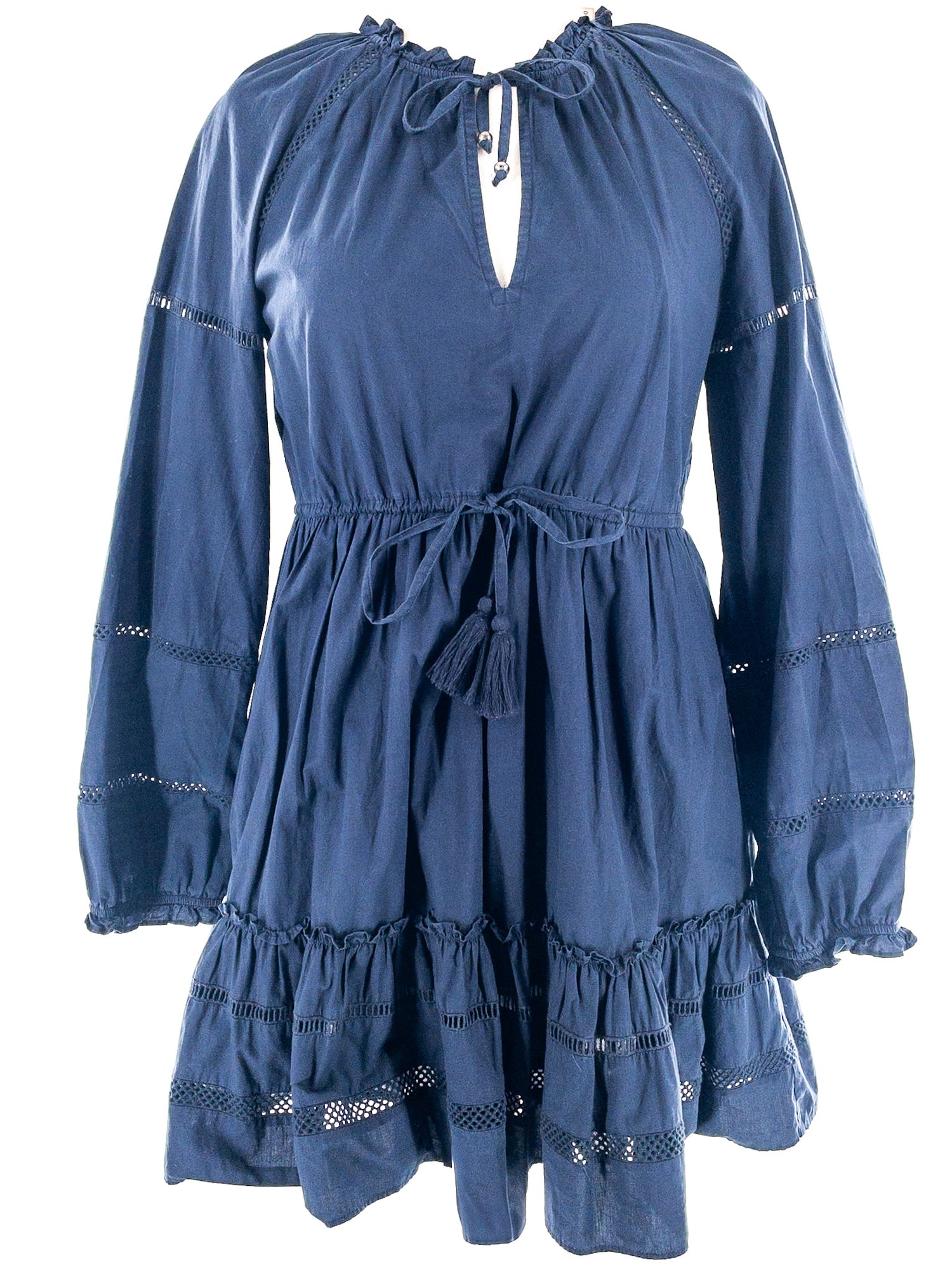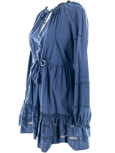 Veronica Beard Navy Drawstring Cotton Long Sleeve Size S Dress