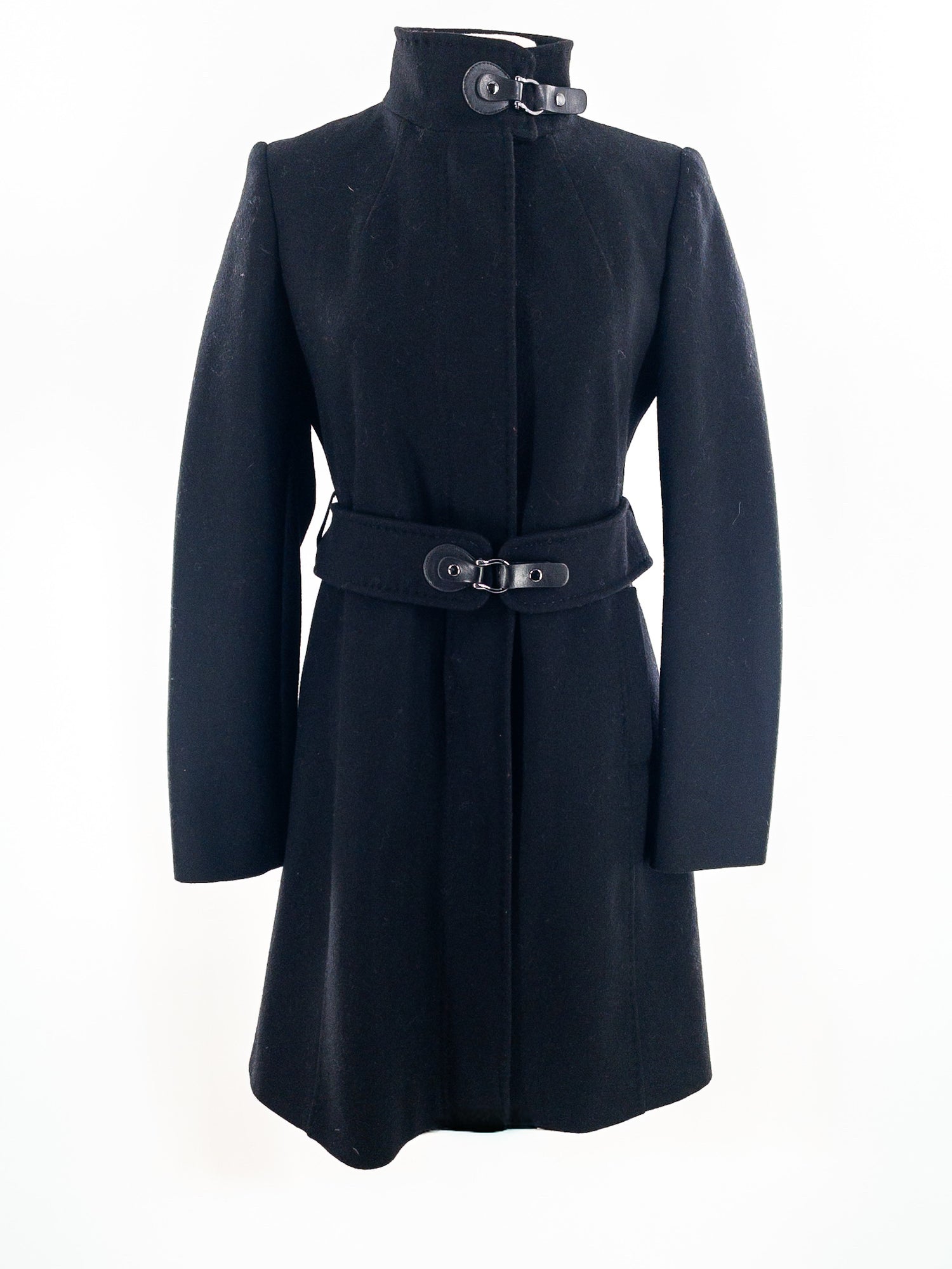 Via Spiga Black Belted Wool Blend Size 2 Coat